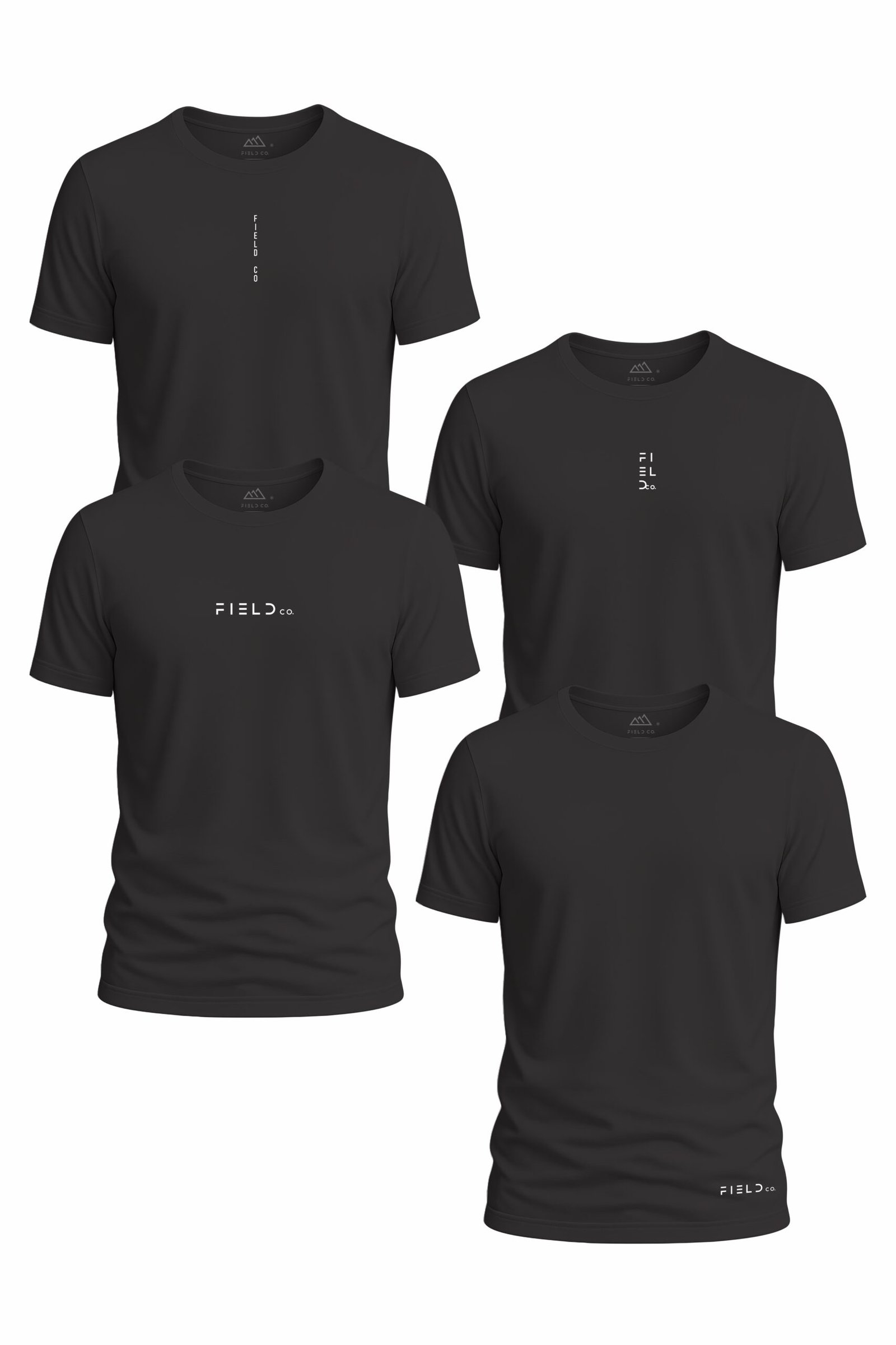 Todas as peças possuem design minimalista na cor preta, com identidade discreta da FIELD CO., proporcionando um visual moderno e fácil de combinar com qualquer estilo.
